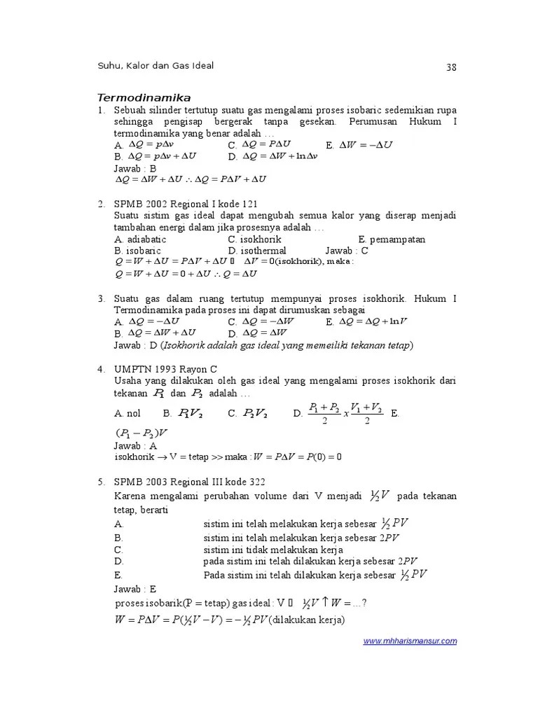Fisika admin — 31/07/2021 · comments off. Aliran panas apa pun yang masuk atau keluar dari sistem harus cukup lambat untuk menjaga kesetimbangan termal. Soal dan jawaban tvri kamis 6 agustus 2020 kelas 4 6 sd. proses yang keempat adalah proses adiabatik. jika pada proses itu temperatur gas naik sebesar 38,4/r kelvin. Oleh karena itu, usaha yang dilakukan gas pada proses isokorik adalah nol (w = p x 0 = 0 ). jika r adalah konstanta gas molar, usaha yang dikerjakan oleh gas selama proses tersebut adalah…. Ada beberapa proses termodinamika, tetapi yang akan kita bahas adalah proses isotermal, isokorik, isobarik dan adiabatis. Tinjau 0,825 ´çý gas ideal yang mengalami proses isotermal dengan kalor q ditambahkan pada gas tersebut. Kerja yang dihasilkan pada proses siklus ini adalah… kilojoule. jika pada proses tersebut gas menerima kalor osn pertamina 2013 sebanyak 500 j, energi dalam gas…. jika dipanaskan dengan tekanan tetap sehingga mengembang. Misalkan konstanta gas universal dinyatakan sebagai r j.